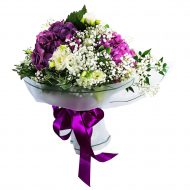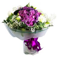 3枝繡球花,桔梗,滿天星,葉上花,伴葉。